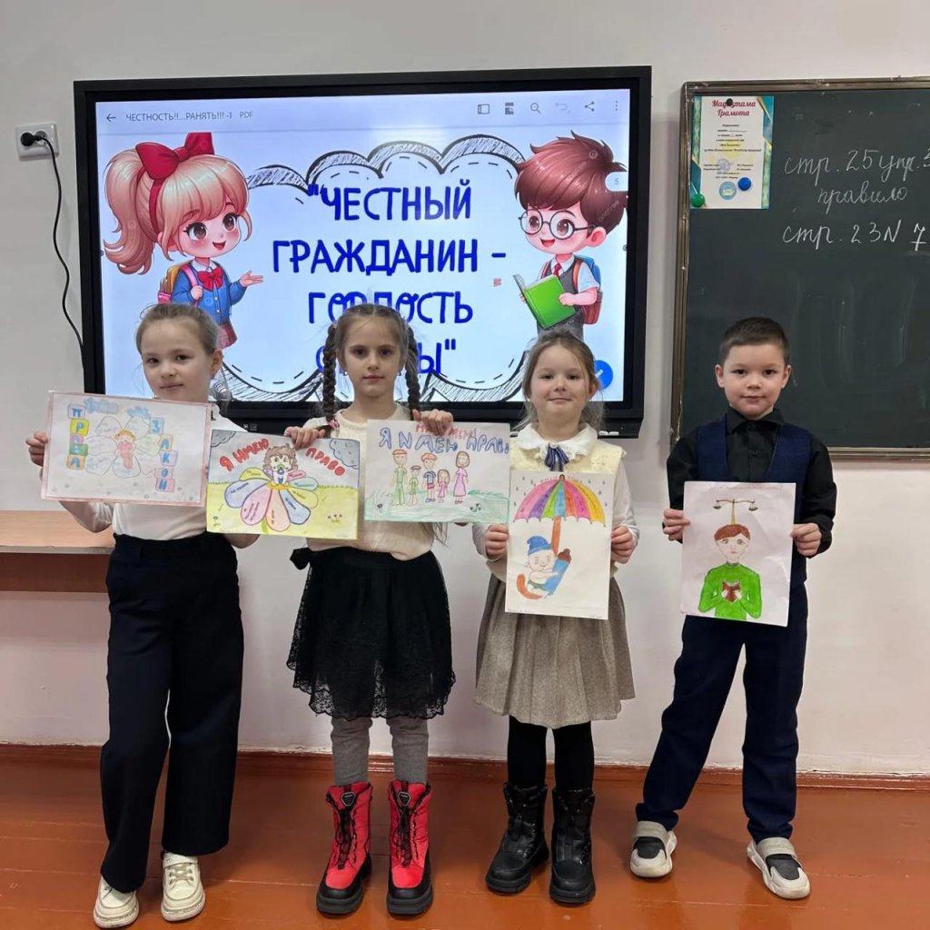 Заң және тәртіп айлығы аясында бастауыш сынып оқушылары арасында «Балалардың көзімен заң» тақырыбында суреттер көрмесі өткізілді.