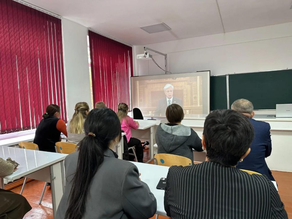 Бүгін мектебімізде педагогикалық ұжым Мемлекет басшысы Қасым-Жомарт Кемелұлы Тоқаевтың халыққа Жолдауын тыңдады.